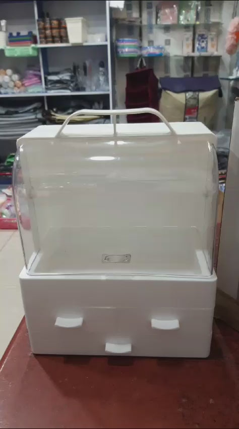 Modern Cosmetic Organizer Makeup Storage Holder, Display Make up Caddy Shelf Organization Boxes Case Dustproof, Handle and Drawer on Countertop